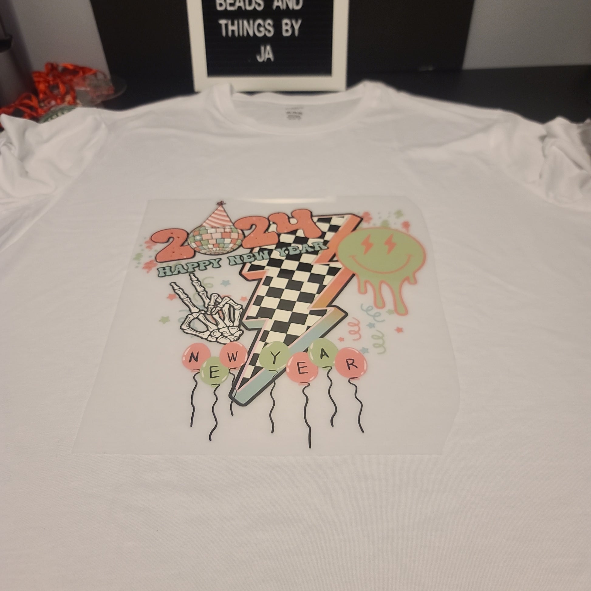 Do NOT iron over design or leave iron on design on either side of garment